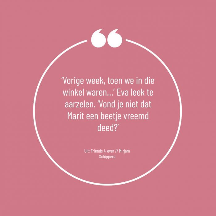 ‘Vorige week, toen we in die winkel waren…’ Eva leek te aarzelen. ‘Vond je niet dat Marit een beetje vreemd deed?’