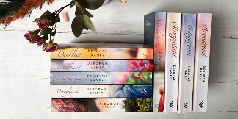 Deborah schrijft feelgood boeken, maar wel met diepgang. Ik vind persoonlijk dat zij het beter doet dan Karen Kingsbury. Deborahs boeken zijn minder ‘Amerikaans’ om het zo maar te zeggen. In de boeken van Karen Kingsbury proef je het patriotisme en veel onderwerpen worden ook op een heel Amerikaanse manier benaderd (zoals Gods leiding in je leven, de militaire dienst en bijvoorbeeld een onderwerp als abortus). Nu zeg ik niet dat het fout is, maar het voelt vaak zo overdreven aan, niets voor nuchtere Nederlanders. En nu kom ik bij het punt dat ik wilde maken, de boeken van Deborah Raney zijn – naar mijn mening dan – niet zo vreselijk Amerikaans en daardoor inspireert ze mij ook om feelgood met diepgang te schrijven, zonder overdreven te worden.