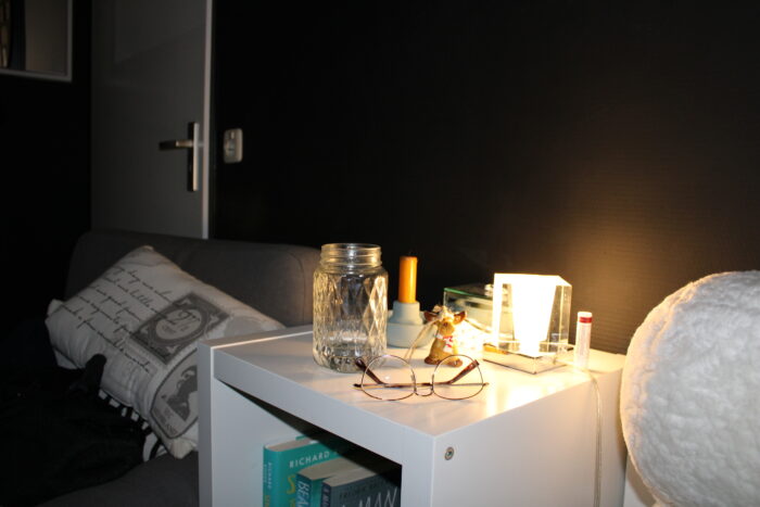 Zo zag die leesavond eruit! Fijne kerstlampjes aan m’n (nieuwe) boekenkasten. Op het kastje naast de stoel stond nog een kaarsje te branden en dankzij Spotify klonk er piano kerstmuziek op de achtergrond. Ik had een geweldige avond, al ging ik een stuk later slapen dan de bedoeling was (22:19).