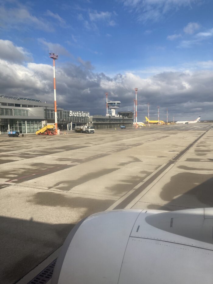 In Slowakije moet je FFP2 maskers dragen, dus wij droegen er in het vliegtuig al een. De vlucht ging snel, we waren er zelfs tien minuten eerder dan de bedoeling was. Ik las tijdens de vlucht mijn vijfde boek van het jaar uit (meer daarover aankomende donderdag ;-)) en luisterde ook naar een audioboek. Uiteraard kletsen we ook gezellig.