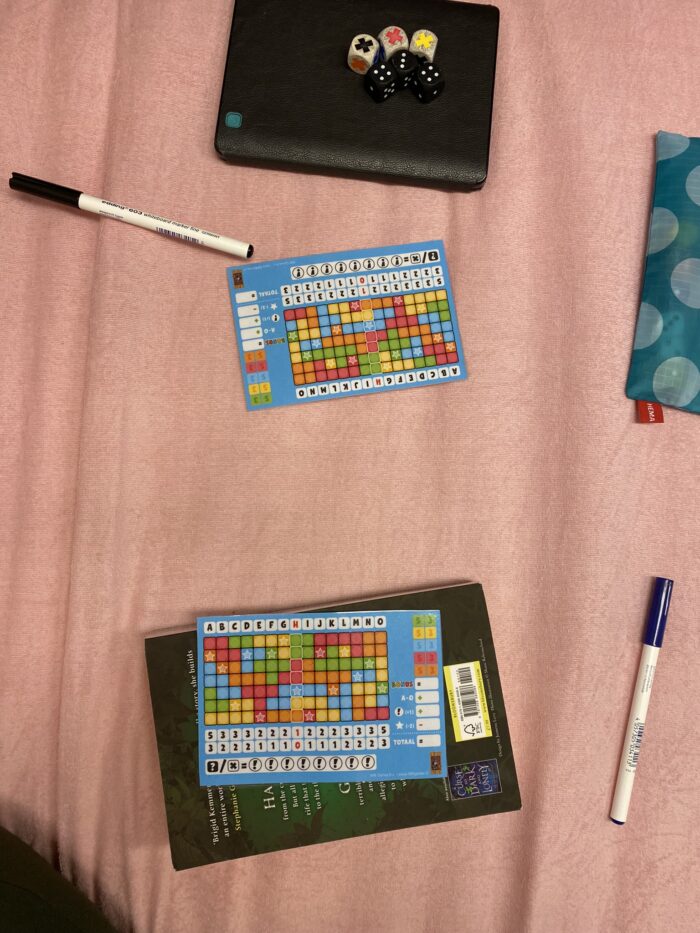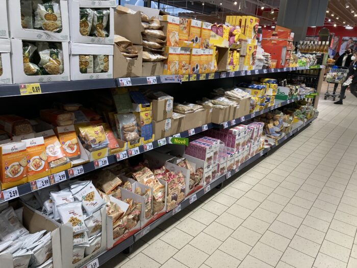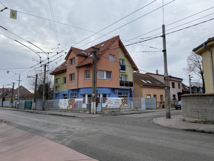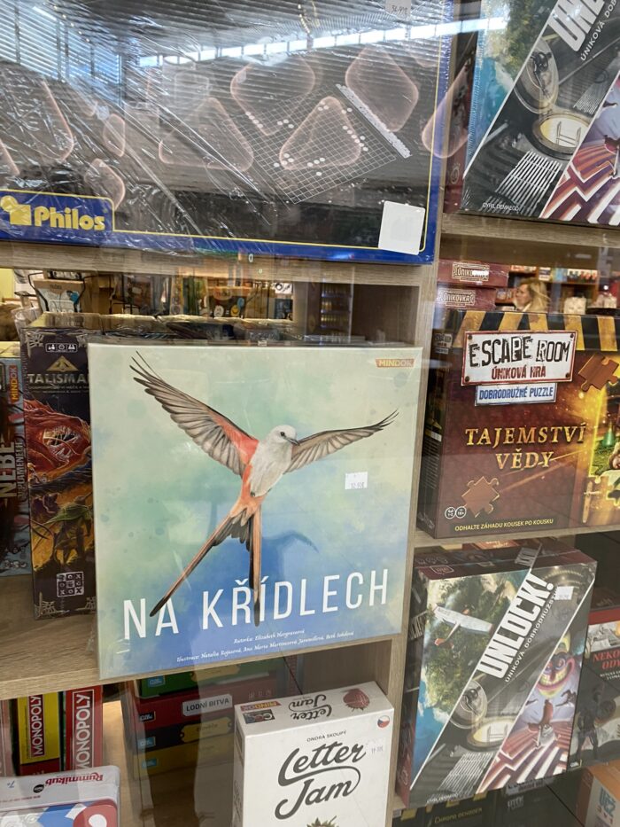 We werden opgehaald door iemand van TWR* en we gingen allereerst lunchen. Helaas was er bij die eetgelegenheid geen glutenvrij aanbod, maar in de supermarkt hadden ze wel een mooi scha en ik heb uiteindelijk wat zoete broodjes gekocht. In Bratislava zijn ze dol op winkelcentra en bijbehorende food courts. In het winkelcentrum waar we vrijdag waren zat ook een spelletjeswinkel en ik kon het niet laten om een foto te maken van de Slowaakse versie van Wingspan. Uiteindelijk werden we bij het gastenverblijf van TWR gebracht en dit was een van de uitzichten. Heel oostblokachtig 😉