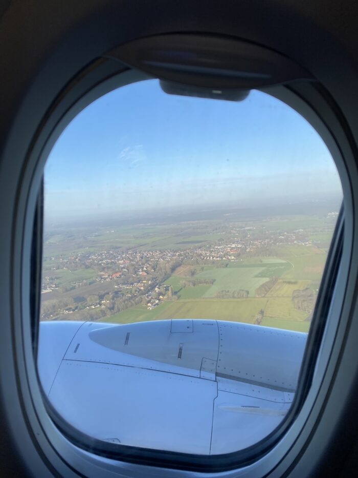 Ik werd ’s morgens wakker in Nieuwpoort, rond kwart over vijf. Ik was de vorige avond al naar Anna Laura gereden, zodat we ’s ochtends naar het vliegveld gebracht konden worden. We hadden afgesproken om kwart voor zeven weg te rijden, dus om zes uur zaten we aan het ontbijt. Daar heb ik geen foto van, want op dat moment was ik vergeten dat ik van deze dag een dagverslag zou schrijven. Uiteindelijk werd het volgens mij wel zeven uur voordat we wegreden. Op Eindhoven namen we afscheid van Anna Laura’s moeder en zus. De security check ging heel snel en voor we het wisten zaten we in een restaurant wat te drinken. Het vliegtuig steeg om kwart over tien op.