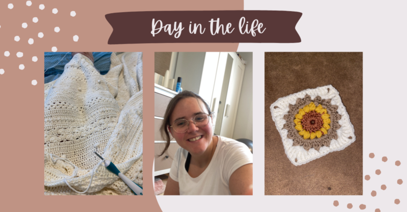 Rond half één nam ik weer pauze en deed ik eerst een work-out. Vervolgens douchte ik en daarna at ik m’n lunch. ’s Middags schreef ik ook nog een en ander en ’s avonds haakte ik de granny square af, waar ik ’s morgens aan begonnen was. Officieel is het volgens mij de Sunburst Flower versie van een Granny Square. Ik kreeg het pas ineens op m’n heupen om truien te gaan haken. Een trui naaien vind ik best lastig (en ik heb nog geen geschikt patroon), maar ik naai wel veel rokjes. Plots dacht ik: maar ik kan ook truien haken. Breien ben ik niet zo goed in, maar haken kan ik als de beste. Op Pinterest vond ik een paar superleuke patronen en ik ben nu begonnen aan een trui van Granny Squares. Toen ik jaren terug begon met haken (eind 2013), vond ik dat heel lelijk: een trui (of ander kledingstuk) van vierkantjes. Maar nu schijnt het helemaal hip te zijn en vind ik het toch wel leuk. Ik ben benieuwd naar het eindresultaat, maar dat gaan jullie vanzelf online zien komen, als-tie af is, trek ik ‘m aan op de dag dat ik een nieuwe Day in the Life ga delen (tenzij de trui hartje zomer afkomt, maar ik verwacht dat het me wel lukt om dit eerder voor elkaar te krijgen).