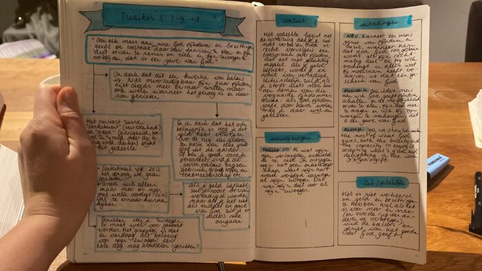Na het ontbijt ging ik Bijbelstudie doen, vorige week heb ik al verteld hoe dat er voor mij uitziet. Nu is de studiebijbel waar ik het in dat bericht over heb nog niet gearriveerd, maar de verwachte leverdatum is 11 februari, dus heb ik besloten om toch maar gewoon verder te gaan, zodat versemapping weer een gewoonte wordt. En de extra’s die ik in die Bijbel vind, kan ik er altijd nog bijschrijven, er is vast nog wel plek 😉