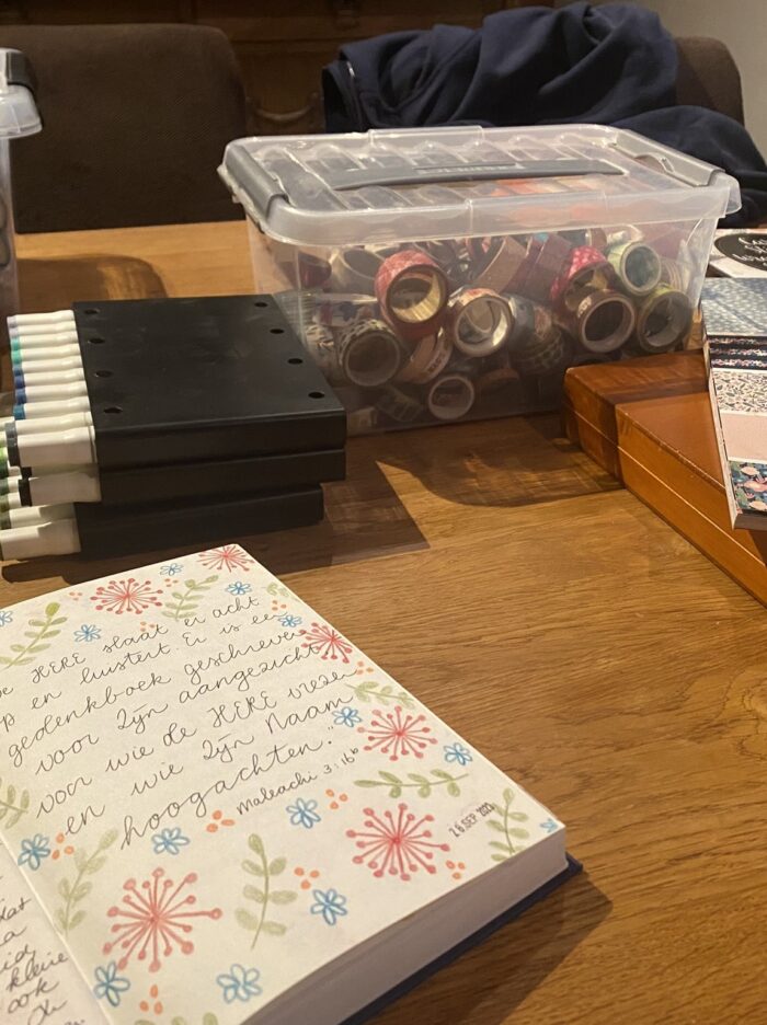 Vervolgens heb ik een tijdje in mijn stiltedagboek gewerkt. Dat was lang geleden en veel bladzijden waren nog niet ‘versierd’. Dat wil ik eigenlijk voor 2025 begint wel klaar hebben, dus heb ik dat vorige week ook veel gedaan.