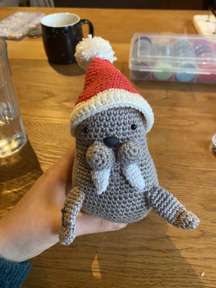 Toen alles opgeruimd was en Jaap weer schoon, hebben we nog het kerstfilmpje van Mr. Bean gekeken en toen heb ik ondertussen nog even gehaakt. Ik kreeg geen vierkantje af, maar die heb ik de volgende dag meegenomen toen we kerst gingen vieren bij mijn ouders en het daar alsnog afgekregen.
