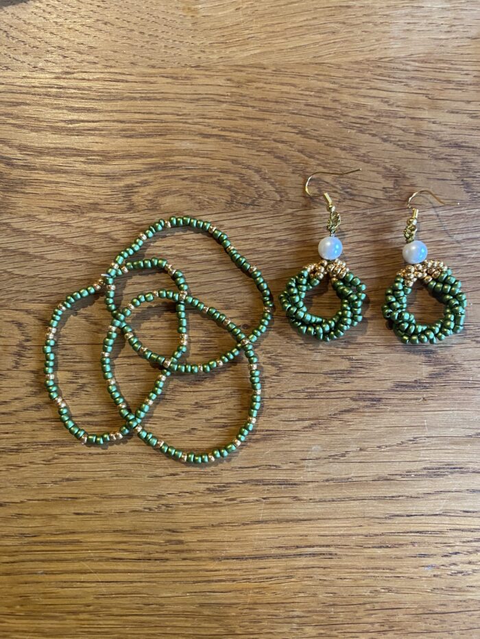 Voor ik ging lunchen heb ik een paar oorbellen gemaakt van kraaltjes en drie bijpassende armbandjes. Die kon ik de dag erna mooi dragen! Ik lunchte met anderhalve paprika, drie glutenvrije crackers met zelfgemaakte kipkerriesalade en een paar blokjes kaas en mosterddillesaus uit m’n kerstpakket. Na de lunch heb ik melk gehaald (bij de melktap in de buurt), maar omdat het regende heb ik daar geen foto’s van. Thuis heb ik eerst gedoucht en toen was het al half 4. Ja, de tijd gaat hard als je het naar je zin hebt!