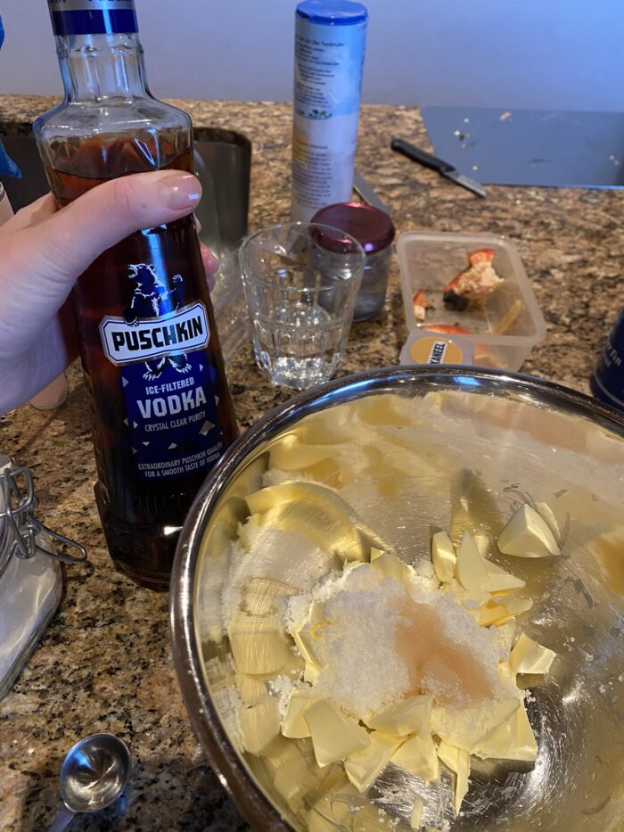 Ik had ook bedacht om kerstkoekjes te bakken, dus dat ging ik eerst maar doen. En zie je de fles wodka? Dat is zelfgemaakte vanille-extract! De aanschaf kostte wat (vooral de vanillestokjes waren duur), maar dan heb je er wel heel lang plezier van! De koekjes waren heerlijk! Ik heb dit recept gebruikt (ik dacht dat ik vorige week ook een link had gedeeld, maar die werkte niet, deze als het goed is wel).