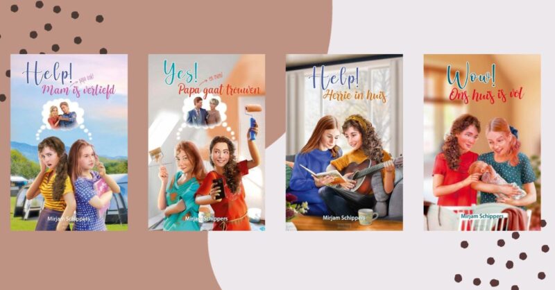 Eerlijk is eerlijk, toen ik in september of oktober 2018 het idee voor deze serie kreeg, had ik niet verwacht dat hij het zo goed zou doen. Ik weet nog dat ik tijdens NaNoWriMo* in 2018 begon aan de eerste versie van het eerste boek. Ik had geen titel en noemde het in mijn logboek ‘Samen’ (later is er een uitroepteken bij gekomen als naam van de serie). Ruim anderhalf jaar vertelde ik weinig over de serie, omdat het niet duidelijk was dat het uitgegeven zou worden. Uiteindelijk zag Help! Mam is verliefd op 28 augustus 2020 het levenslicht en kon een halfjaar later Yes! Papa gaat trouwen verschijnen. Daarna zat er steeds een jaar tussen de verschijning van de boeken en dat was wel nodig ook. Het schrijven van Help! Herrie in huis en Wow! Ons huis is vol kostte meer moeite dan de eerste twee delen, ik denk omdat ik onbewust voelde dat er meer druk op me lag. De serie had fans en ik wilde hen niet teleurstellen.