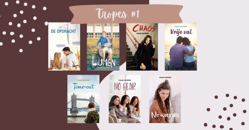 Het is tegenwoordig helemaal hip om boeken te promoten met de tropes die ze bevatten. Nu vind ik tropes lastig te vertalen in het Nederlands. ze noemen het soms wel stijlfiguur, maar dat dekt de lading voor mijn gevoel niet helemaal. In de muziek noemen ze het een toevoeging van een nieuwe tekst in een bestaande compositie. In de boekenwereld is het een bepaalde verhaallijn die regelmatig voorkomt, zoals de lovetriangle (twee jongens zijn op hetzelfde meisje verliefd en ze moet kiezen), enemies to lovers (hoofdpersonages die eerst een hekel aan elkaar hebben, maar uiteindelijk verliefd worden. Hoe dan ook, het leek mij leek om mijn boeken eens onder de trope-microscoop te leggen en kijken welke tropes erin voorkomen. We beginnen deze mini-reeks met mijn standalones.