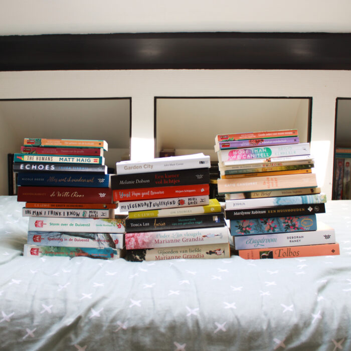 Gelijk heb je, dat je zoiets had van nu-of-nooit, wie weet hoe actief/druk/ingevuld je leven in de toekomst is en of het je dan nog lukt om zo veel boeken in een jaar te lezen. Een echte once-in-a-lifetime challenge. Ik zit ook nog op schema van mijn doel (200), maar merk ook dat het best lastig is bij te blijven als je een paar flinke dikke boeken van zo’n 700 bladzijdes ertussen hebt zitten (geen idee waarom ik dan ongepland gisteren met o.a. een heel dik boek bij de bibliotheek vandaan kwam haha). Maar dunnere boeken en/of kinder- of jeugdboeken zijn dan (naast dat ze sowieso leuk om te lezen zijn) een mooie manier om het op peil te houden.