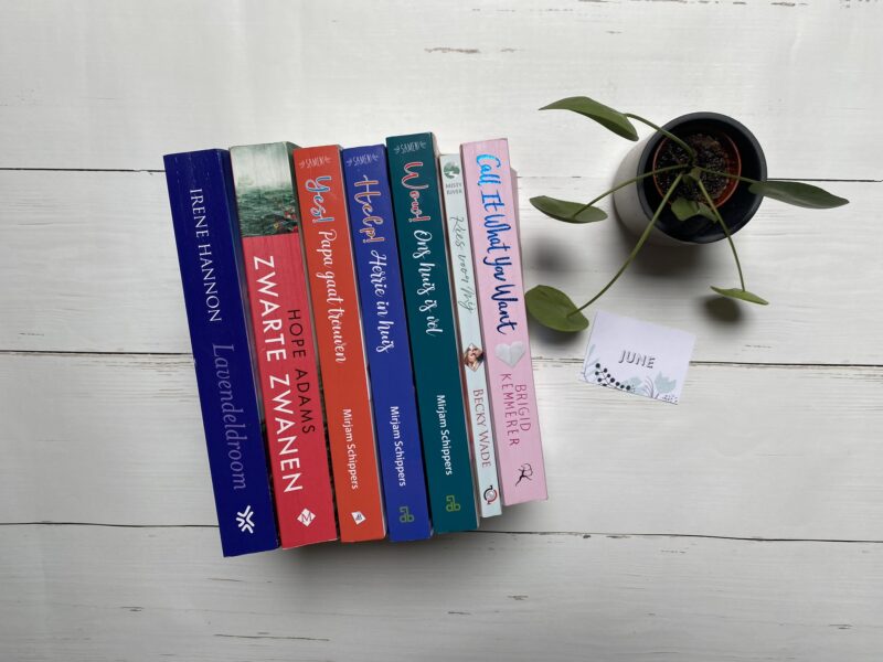 Begin juni ging het lezen echt voor geen meter, zelfs niet toen ik mijn eigen boeken las. Ik deed gerust een week over een boek, wat voor mij heel lang is. Dat kwam vooral omdat ik veel hoofdpijn had en dan echt geen zin in lezen had. Gelukkig kreeg ik halverwege de maand mijn nieuwe bril en nadat ik gewend was, las ik toch flink wat boeken in juni, totaal 14 stuks, dus ruim boven wat ik gemiddeld per maand wil lezen. Hier een overzichtje van de boeken die ik las: