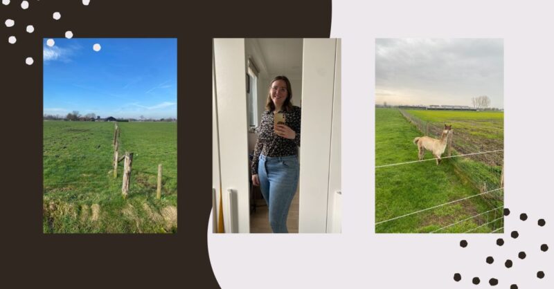 Voor het eerst in mijn leven ging ik na het avondeten een rondje lopen met mijn man. Uiteraard heb ik wel eerder een rondje gelopen na het avondeten, maar toen was Jaap mijn man nog niet. We ontdekten deze week ook een heel toffe wandelroute die ons het gevoel geeft dat we op vakantie zijn. Het grappige is dat als ik deze route met Jaap loop, we na hooguit 40 minuten weer thuis zijn, maar als ik het in mijn eentje loop, doe ik er een uur over. Jaap heeft veel langere benen dan ik en als we samen lopen, krijg ik echt een goeie work-out 😉 Twee weken later maakten we kennis met een leuk dier en sindsdien komt het beest steeds naar ons toe lopen als we langskomen (ik ben nog steeds niet 100% zeker of het een alpaca of een lama is, zie foto hieronder).