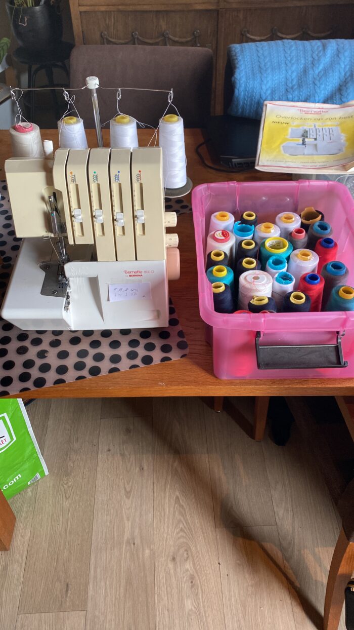 Deze week heb ik voor het eerst van m’n leven een lockmachine ingeregen 😀 Al jaren stond zo’n apparaat op mijn verlanglijstje – zelfs in de tijd dat ik niet naaide. Ik wilde het graag weer oppakken, maar met een lockmachine zou ik de zelfgemaakte kleding veel mooier kunnen afwerken. En in week 3 KREEG ik er eentje van een lieve vriendin! De machine was van haar opa geweest en zij had er zelf al eentje, dus kreeg ik deze, inclusief een doos met lockgaren! Ik heb er al veel gebruik van gemaakt en weet zeker dat ik hier heel veel plezier van ga beleven 🙂