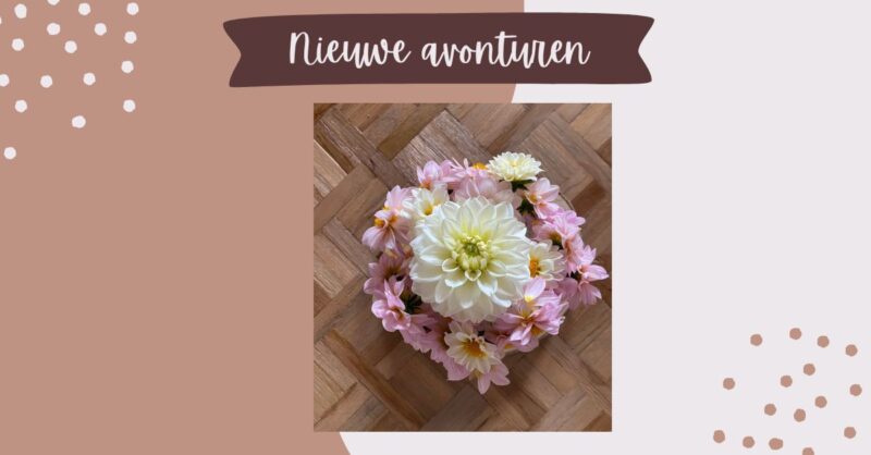 O, en ik haalde voor het eerst een boeket dahlia’s uit de tuin. Vorig jaar had ik er te weinig om dat te doen, maar nu komen ze lekker op gang!