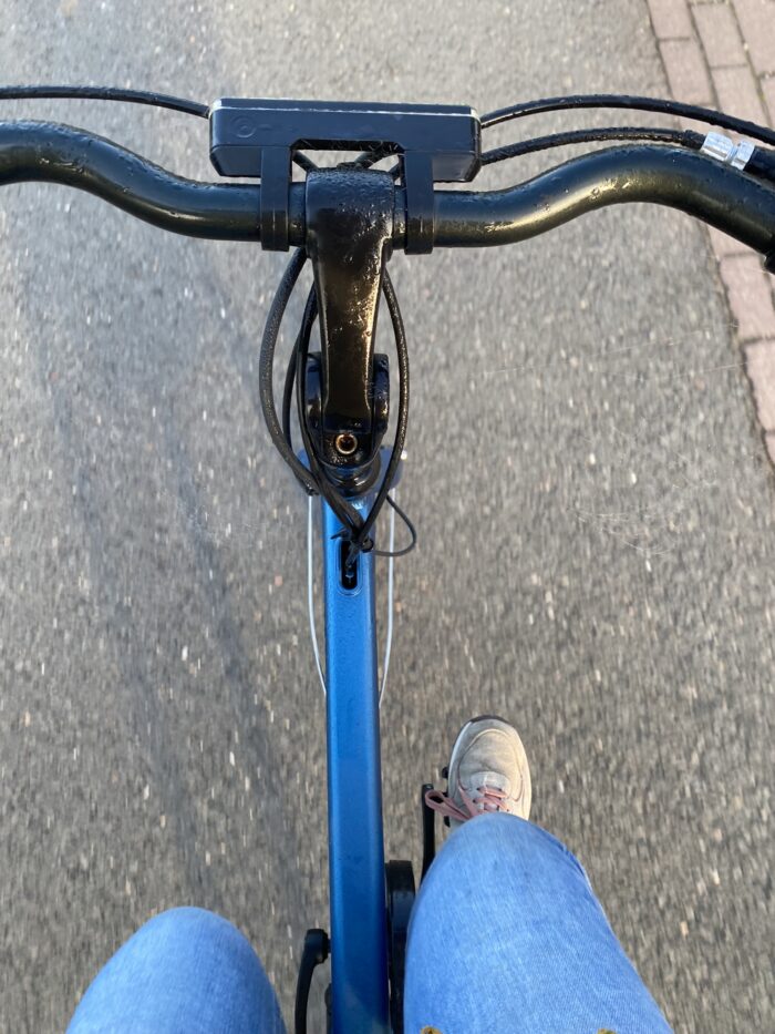 Omdat de band van mijn fiets leeg was (volgens mij was-tie niet lek, maar was er iets met het ventieltje), ging ik zaterdag naar mijn werk op Jaaps fiets. Nu moet je weten dat Jaap bijna 30 centimeter langer is dan ik en een ‘echte’ herenfiets heeft, dus met een stang in het midden. Het ging goed, maar was best een uitdaging.