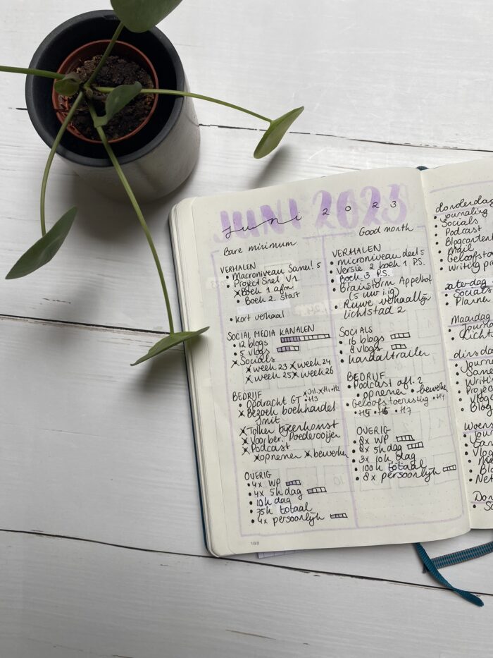 Of ik deze maand de 100 uur ga halen weet ik niet, maar er staat weer genoeg op de planning. Misschien haal ik mezelf wel veel te veel in mijn hoofd, maar dat zien we halverwege de maand wel. Ik wil heel graag Samen! deel 5 zo ver klaar krijgen dat-ie naar proeflezers kan. Dat betekent nog 5 hoofdstukken macroniveau en het boek op microniveau herschrijven. Nu heb ik dat laatste ook al een beetje gedaan tijdens herschrijven op macroniveau, dus ik geloof dat het zeker goedkomt. Ook heb ik nog tot 15 juli om m’n opdracht af te maken. Daarnaast ga ik 13 juli naar Poederooijen om bij de stand van ‘De Boekenplank’ te staan en tot slot hoop ik boek 2 en 3 van Project Snel te schrijven, maar misschien is dat wel wat te veel gevraagd.