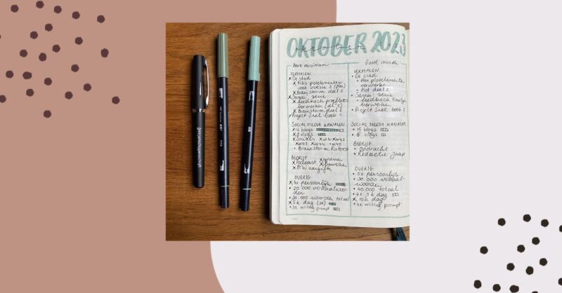 Zoals ik afgelopen donderdag al schreef ging oktober zowel snel als langzaam, voor mijn gevoel. Dat zal vast te maken hebben met alle voorbereidingen voor de bruiloft en het inrichten van ons huis. Op dit moment zit ik aan m’n eigen eetkamer te typen, het huis is al zo goed als bewoonbaar, dus ik zit nu regelmatig hier en ik heb al gemerkt dat ik er heerlijk kan schrijven. Maar goed, daar gaat dit bericht niet over, want ik vertel je hier vooral veel over mijn schrijfwerk in oktober. Kwam er iets van mijn plannen terecht?