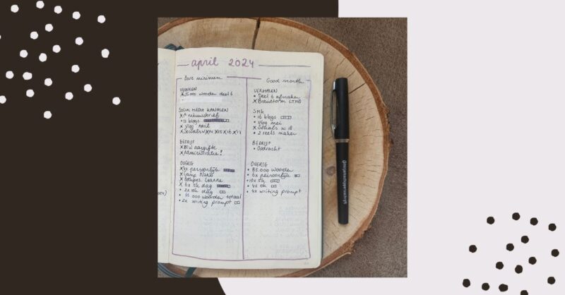 Yes! Ik mag weer het leukste blogbericht van de maand schrijven. Zelf geniet ik altijd ontzettend van het schrijven van mijn schrijflogboeken, omdat ze me heel goed duidelijk maken of ik een beetje op schema loop met mijn doelen en het geeft inzicht wat ik nu eigenlijk de afgelopen tijd heb zitten doen. In april kwam ik een beetje langzaam op gang, maar uiteindelijk heb ik een heel fijne schrijfmaand gehad!