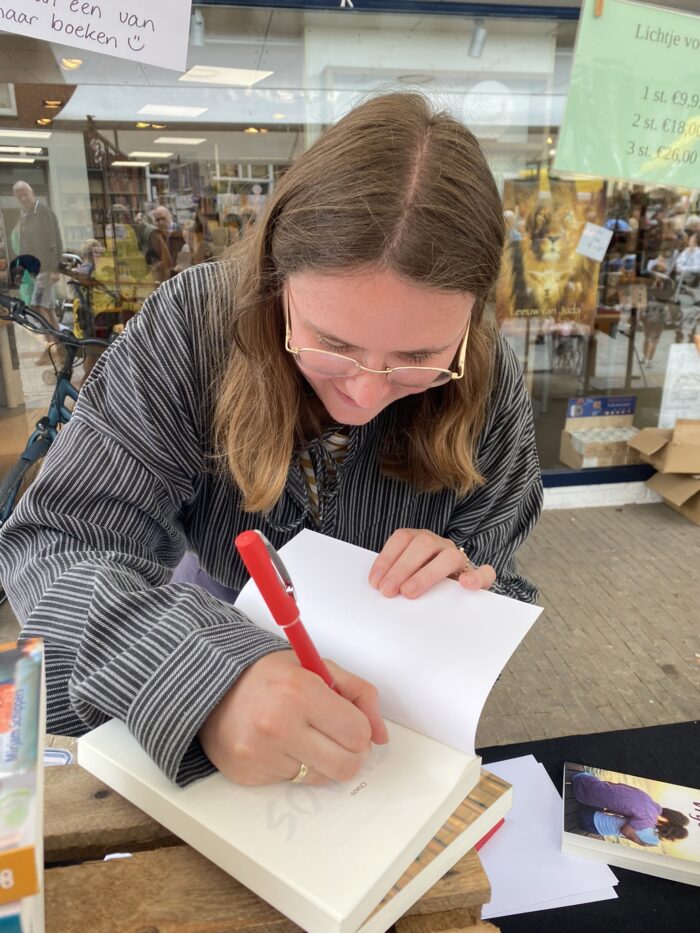 In augustus heb ik uiteindelijk niet een, maar wel twee donderdagen op de Oud Veluwse Markt gestaan achter de kraam van De Wedloop. Toen heb ik verschillende fans gesproken en behoorlijk wat boeken verkocht. En ook hebben Anna Laura en ik twee podcastafleveringen opgenomen. - Van alles en nog wat – 1030 minuten