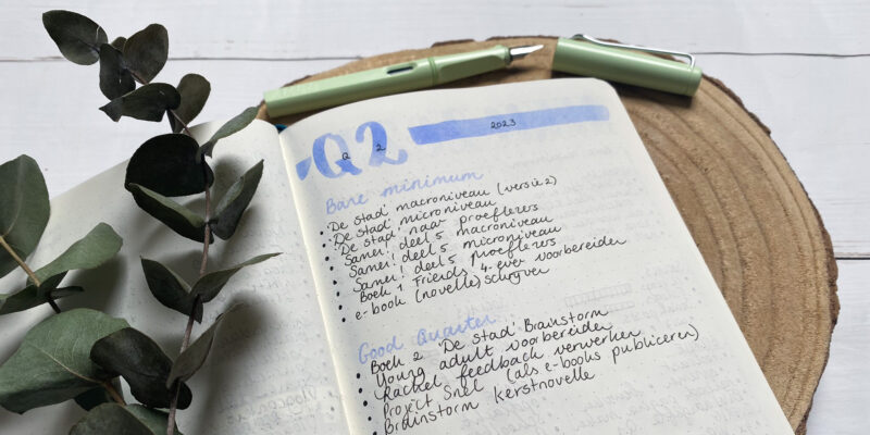 Het is alweer meer dan een jaar geleden dat mijn leven als (bijna) fulltime schrijver begon en nu ik daarnaast ook ondernemer ben, werk ik nóg meer met kwartaaldoelen dan voor die tijd. Ik heb gemerkt dat het helpt bij het verdelen van mijn jaardoelen over de kwartalen en vervolgens weer over de maanden. Het eerste kwartaal van 2023 was grotendeels productief te noemen en ik ben heel blij met alles wat ik bereikt heb. In dit bericht blik ik terug op Q1 en vertel ik je meer over mijn doelen voor Q2.
