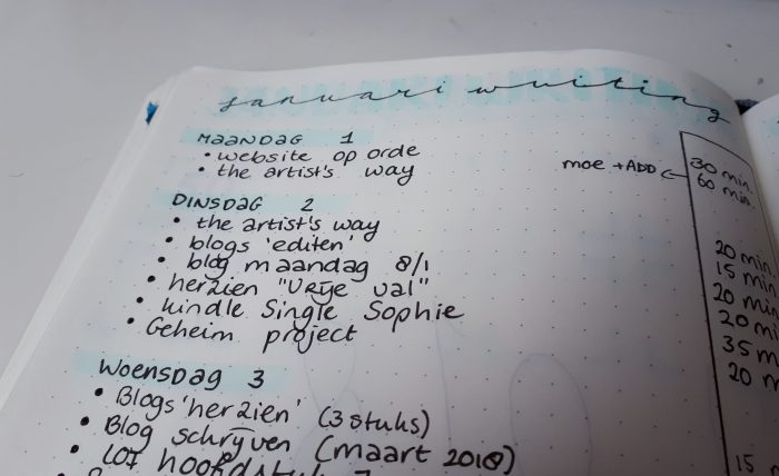 In totaal heb ik de afgelopen maand 2295 minuten besteed aan schrijven. Dat komt neer op 38 uur en 15 minuten. Of het in februari meer wordt betwijfel ik… het is een korte maand én ik hoop zelfs een weekje op vakantie te gaan. Maar wie weet, levert dat juist extra veel inspiratie op.
