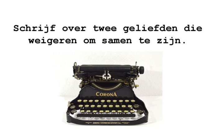Omdat mijn drie boeken toch wel om romantiek draaien, ben ik begonnen met een prompt die ook om romantiek draait: Schrijven over geliefden die weigeren om samen te zijn. Mijn vingers beginnen ervan te jeuken. Het liefst ga ik er meteen mee aan de slag. Hopelijk is dat bij jou ook zo! Door middel van dit bericht daag ik je uit om iets te schrijven bij deze writing prompt.