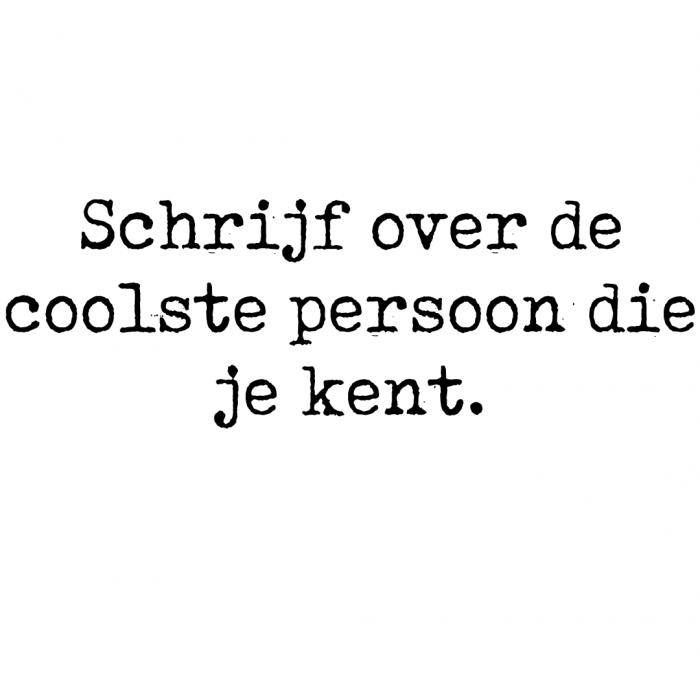 Je gaat dus een bericht schrijven over de coolste persoon die je kent. Dit mag een bestaand persoon zijn, maar ook een fictief persoon. Je kunt bijvoorbeeld ook schrijven over de coolste persoon die het hoofdpersonage uit jouw boek kent. Of waarom de hoofdpersoon van jouw verhaal de coolste persoon is die een ander personage uit jouw boek kent. Wees vooral creatief en zie de prompt niet als wet. Want out of te box gebeuren de mooiste dingen!